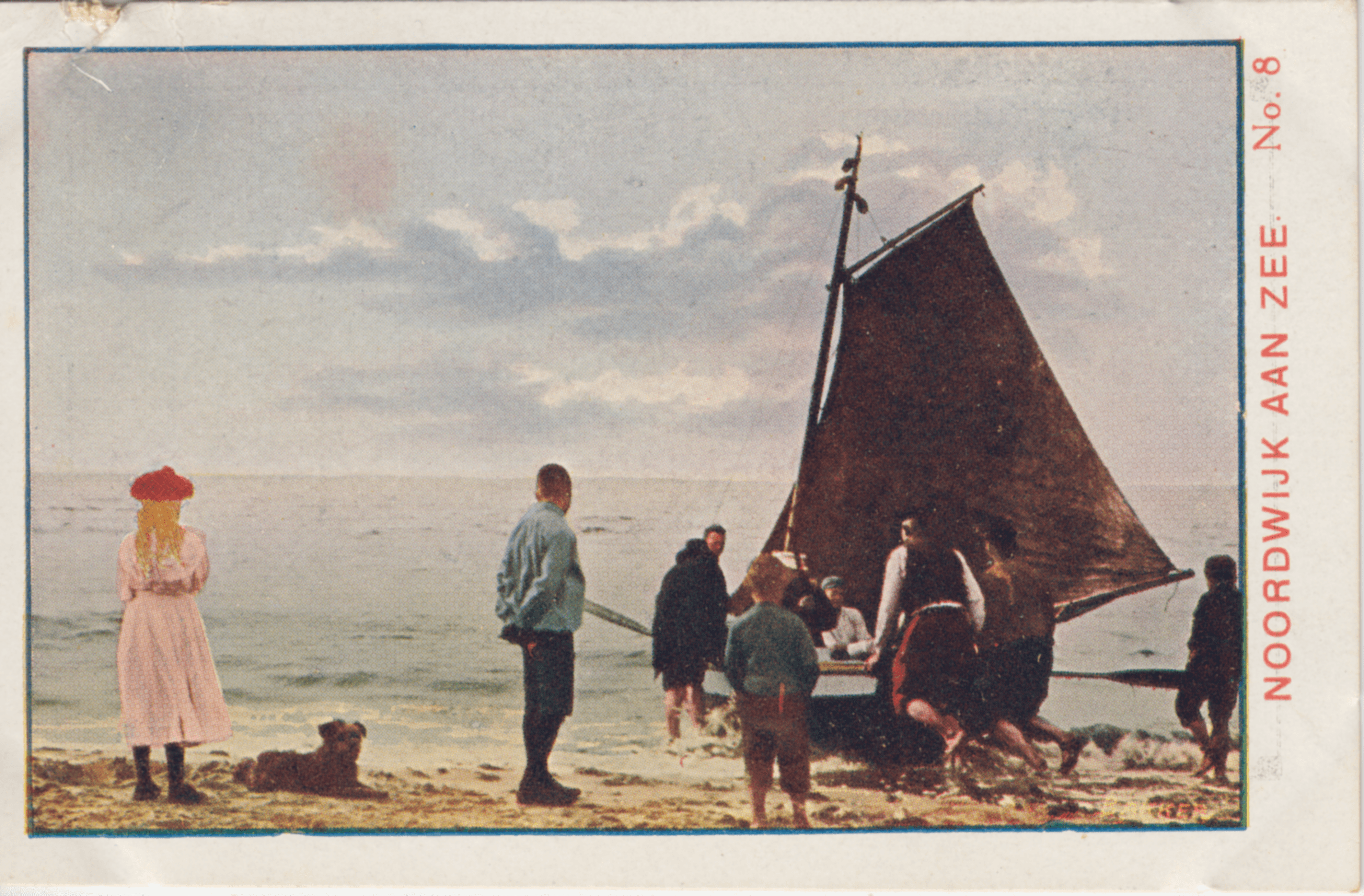 Dit plaatje geeft ons een aardig tooneeltje te zien. Enkele badgasten gaan in een visschersschuit een pleziertochtje maken op zee. Zoo'n uurtje bij prachtig stil weer in zoo'n eenvoudige boot is een heerlijke verpoozing, maar geeft den reizigers geen juist denkbeeld van de gevaren, waaraan de visscher is blootgesteld, wanneer de storm de golven torenhoog opzwiept en 't schuitje een notendopje gelijk is, dat door de woeste baren heen en weer wordt geslingerd.