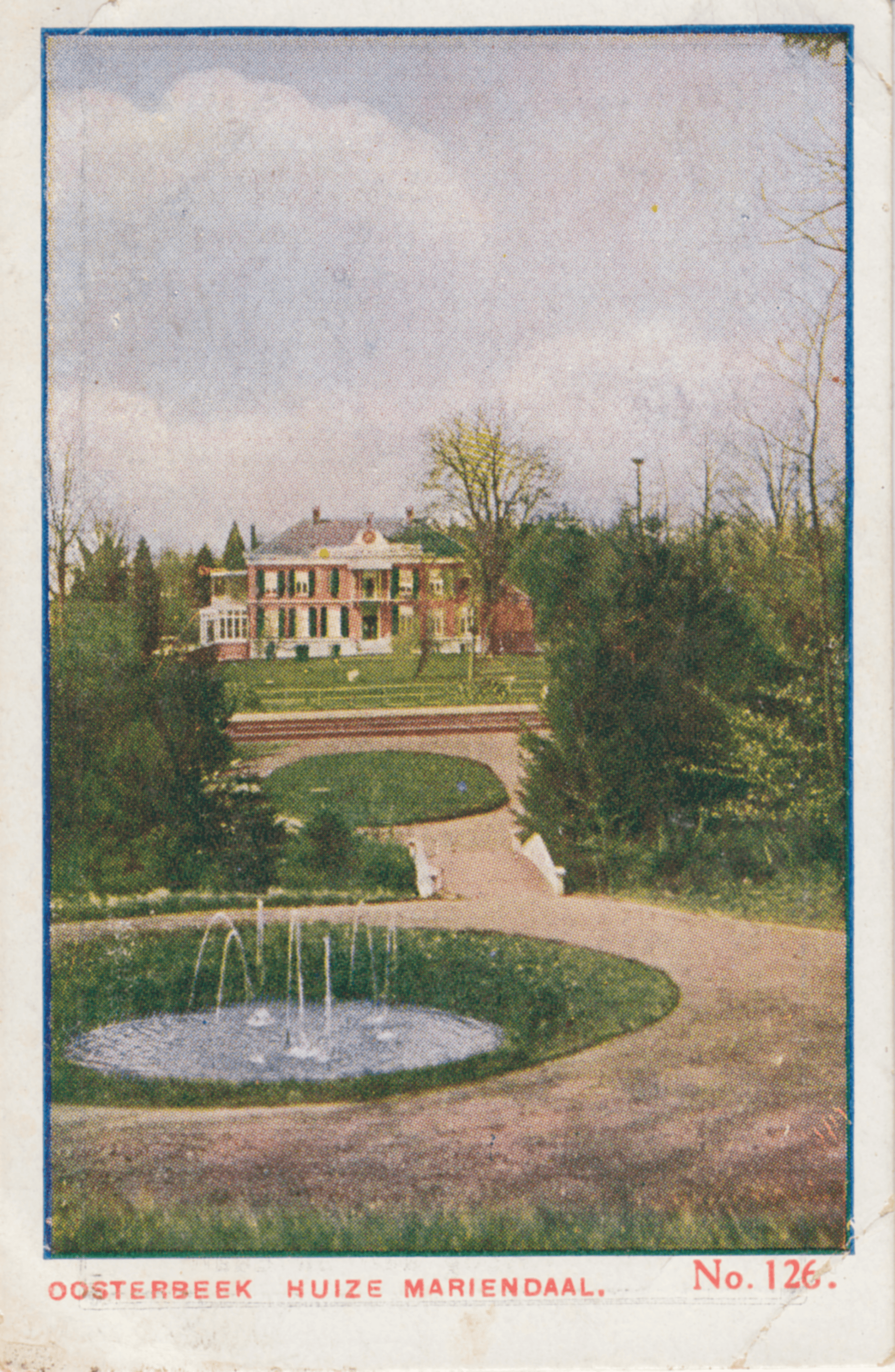Oosterbeek, een fraai dorp in de Geldersche gemeente Renkum, is gelegen in een streek, die een der schoonste van geheel Nederland kan worden genoemd, uithoofde van de menigvuldige, bekoorlijke landgoederen, die aan elkander sluitende een reusachtig park vormen. Ons kiekje toont ons een er van, het prachtige „Huize Mariëndaal”.