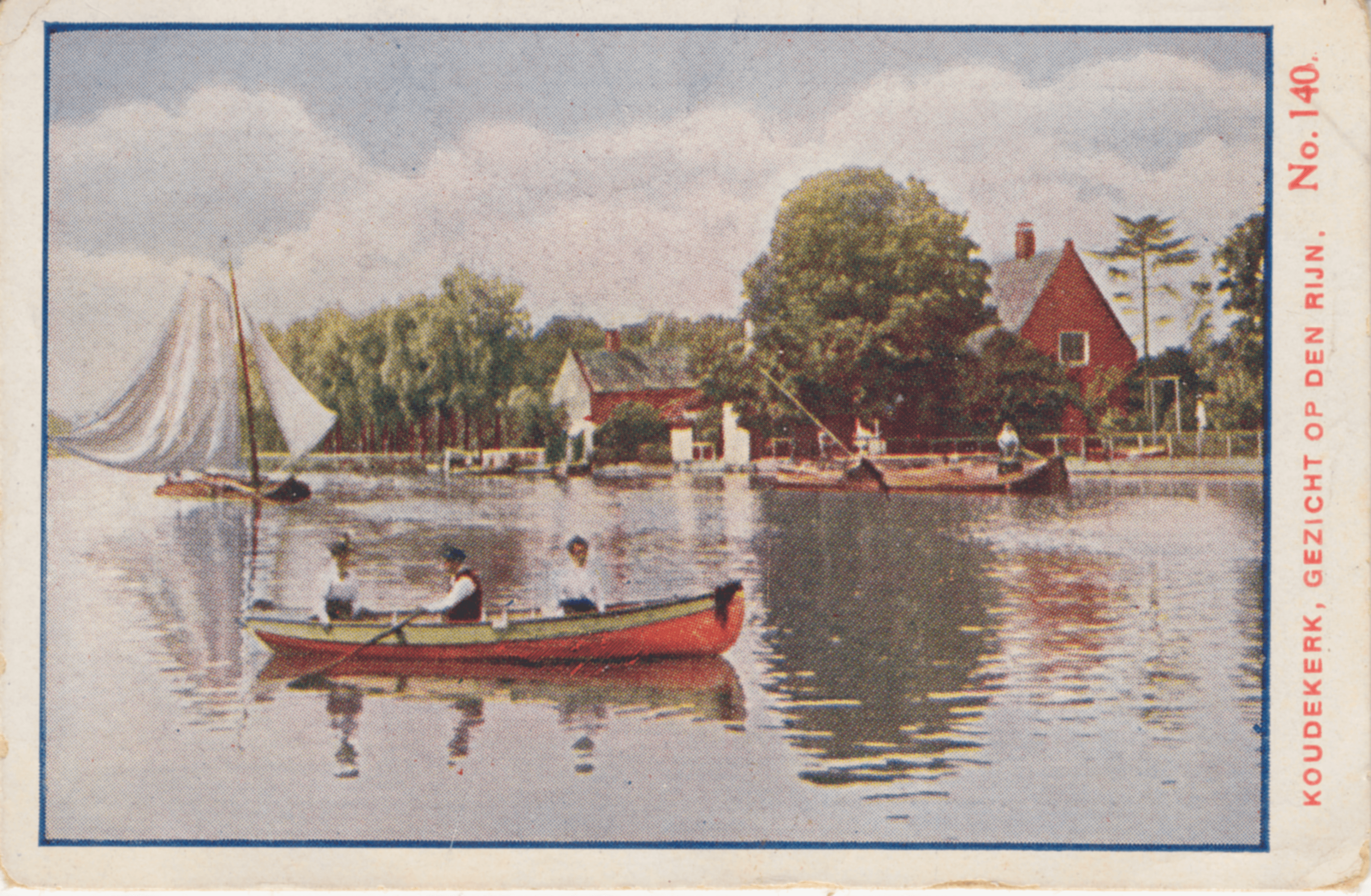 Koudekerk is een fraai dorp in Zuid-Holland, gebouwd aan den Noorderoever van den Rijn. Ons plaatje geeft een fraai kijkje op de rivier met 'n schilderachtigen achtergrond.