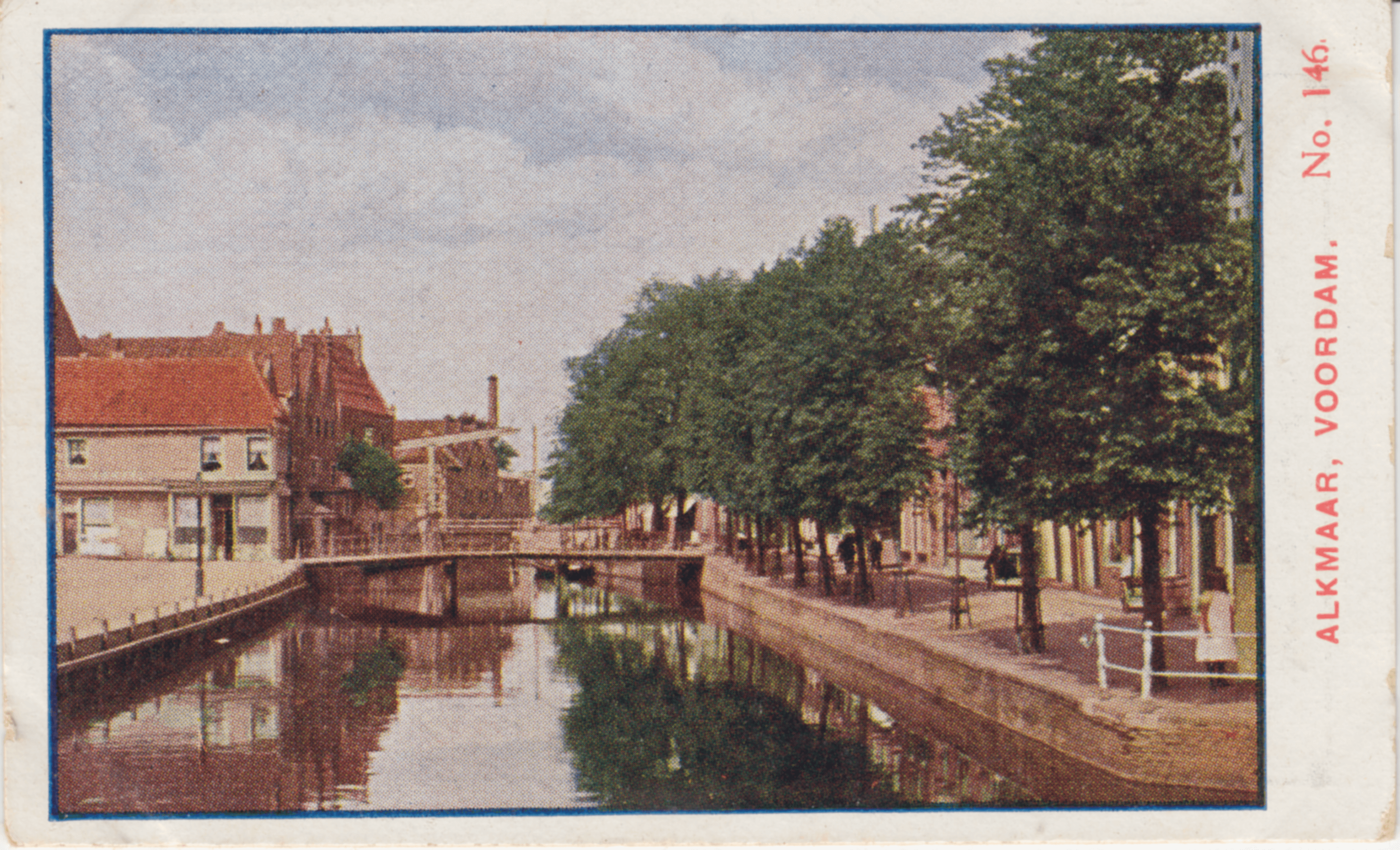 Dit plaatje biedt ons een kijkje van Alkmaar, de oude hoofdplaats van Kennemerland, thans een fraai stadje in de provincie N.-Holland. In de geschiedenis wordt Alkmaar vaak genoemd. Vooral is het stadje bekend om de wijze, waarop zij in 1573 den aanval der Spanjaarden afsloeg, zoodat men, toen de vijand het beleg ophief, overal den blijden kreet hoorde: „Van Alkmaar begint de victorie!”