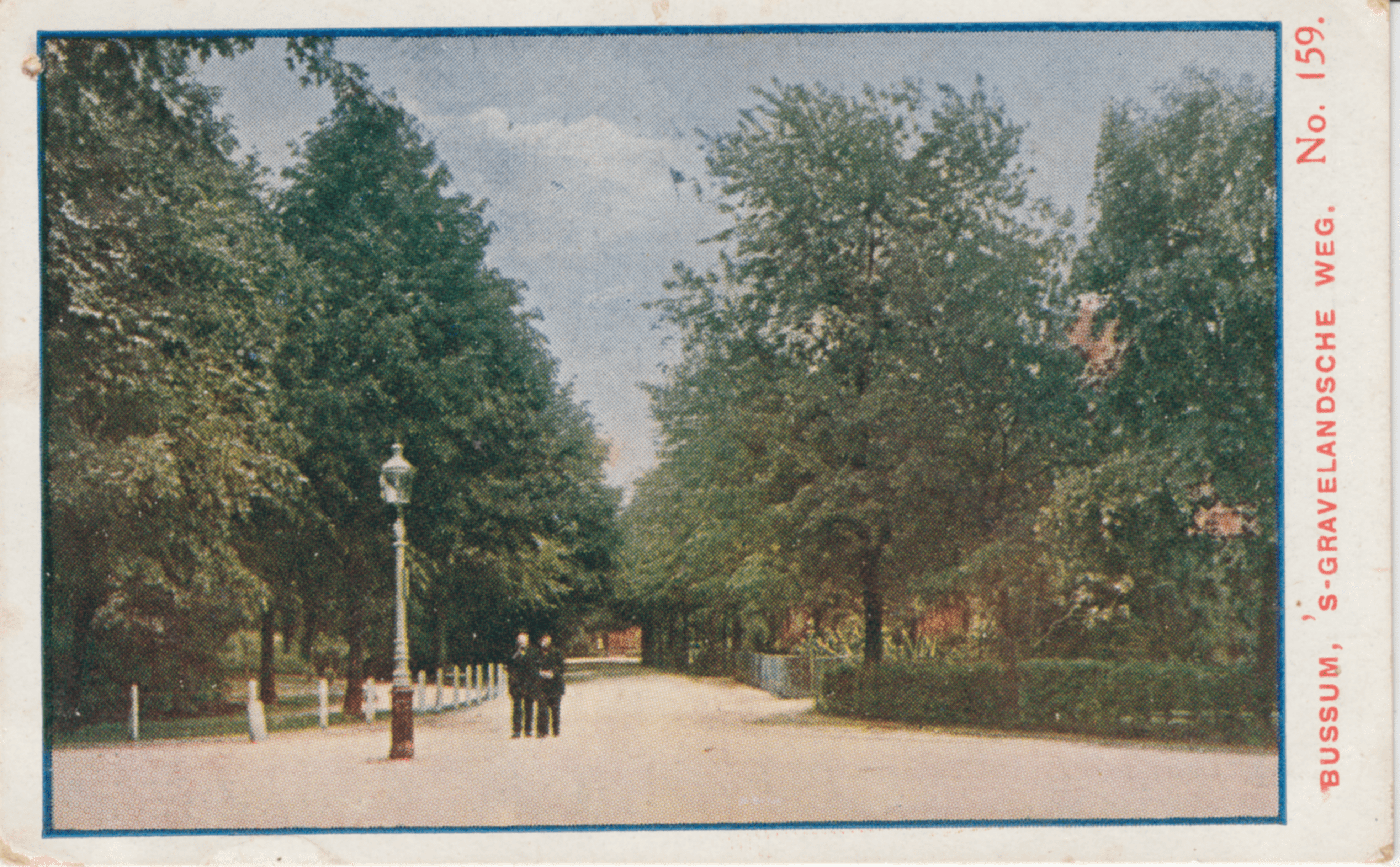 Dit fraaie plaatje geeft ons een kijkje op een der prachtige lommerrijke wegen van het dorp Bussum, gelegen in de provincie Noord-Holland tusschen Naarden en Hilversum. Een groot gedeelte der inwoners van Bussum zijn oorspronkelijk Amsterdammers, die hunne zaken of bedrijf dagelijks nog in de hoofdstad uitoefenen.