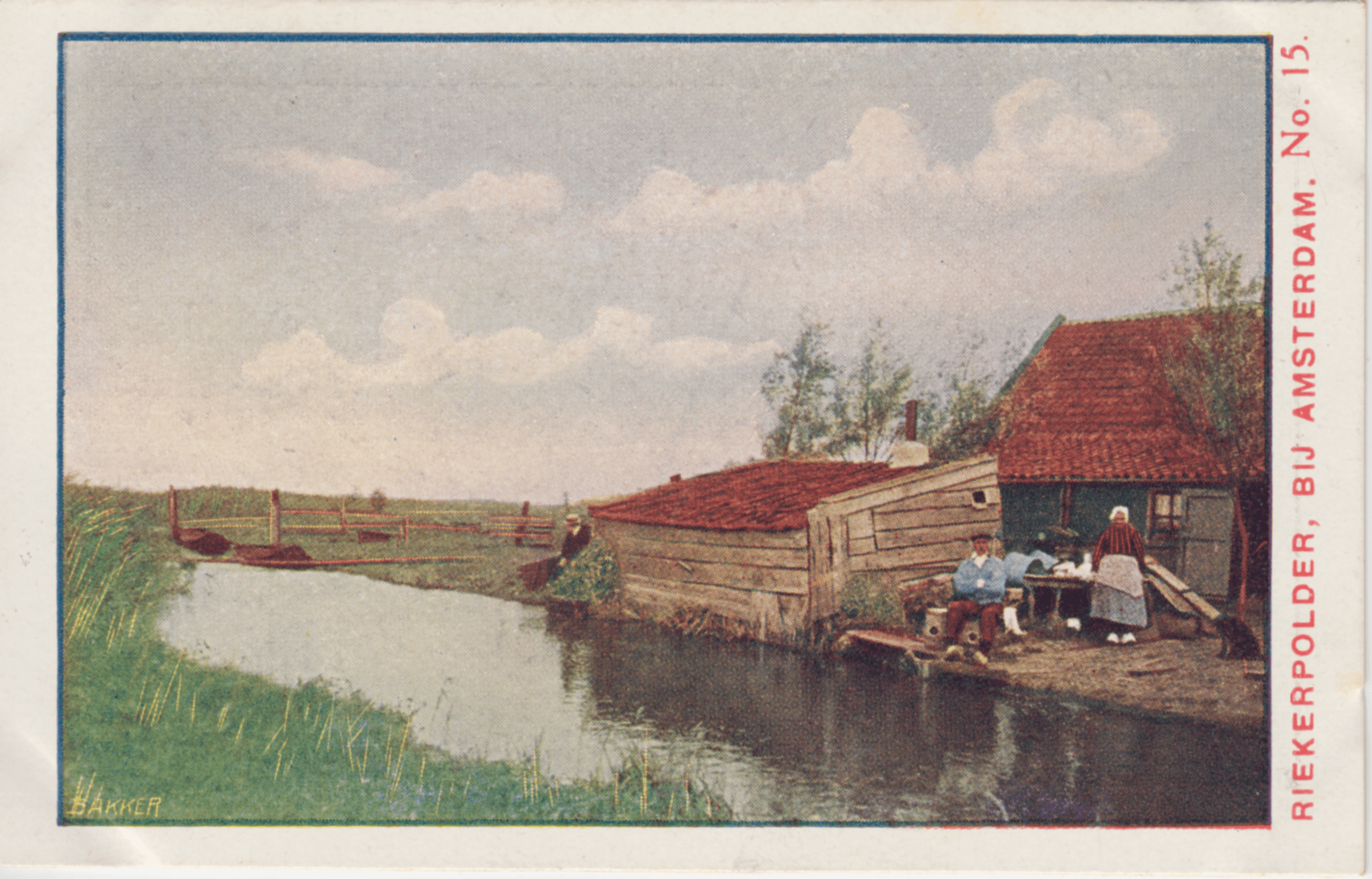 Dit plaatje brengt ons een gezicht op den Riekerpolder, die wel spoedig zijn landelijk aanzien zal verliezen, daar er plannen bestaan Amsterdam in die richting uit te breiden.