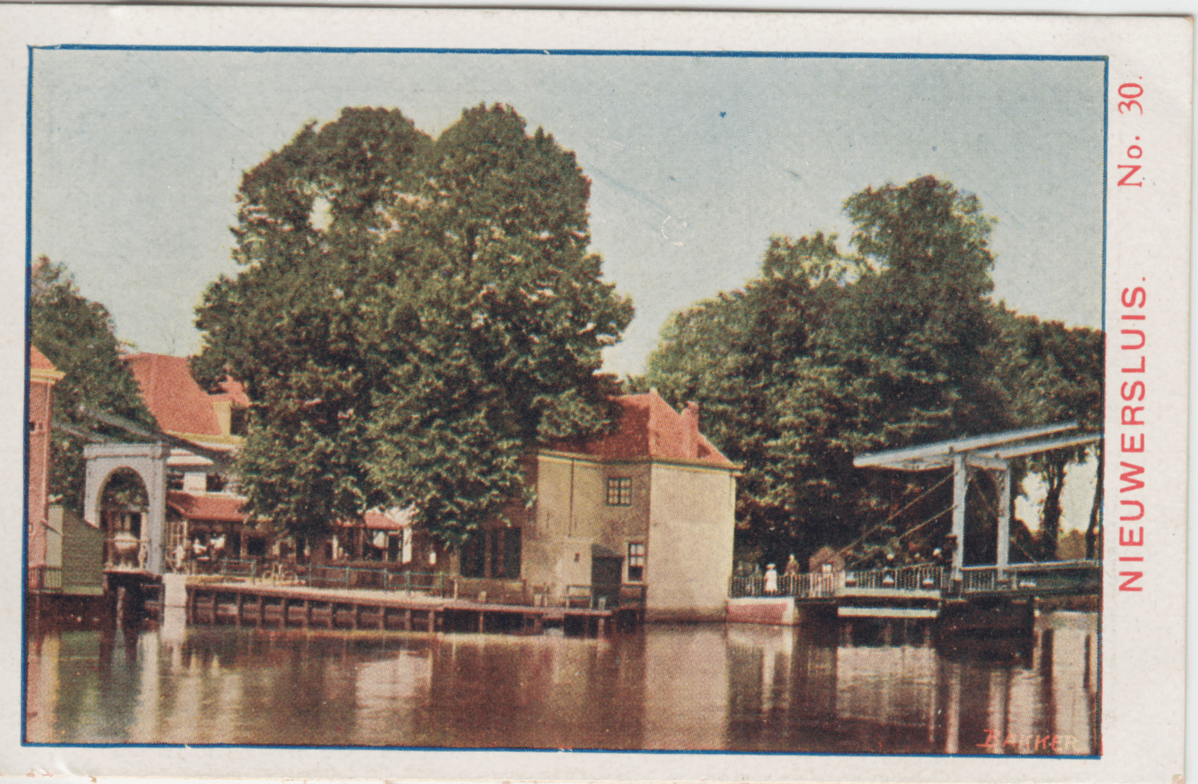 Een mooi gezicht op het gehucht Nieuwersluis aan de Vecht biedt ons dit plaatje. Nieuwersluis is schilderachtig gelegen en als bijzonderheid van 't plaatsje geldt, dat alle personentreinen, zelfs de sneltreinen van den spoorweg Amsterdam-Utrecht en Gouda er moeten stilhouden.