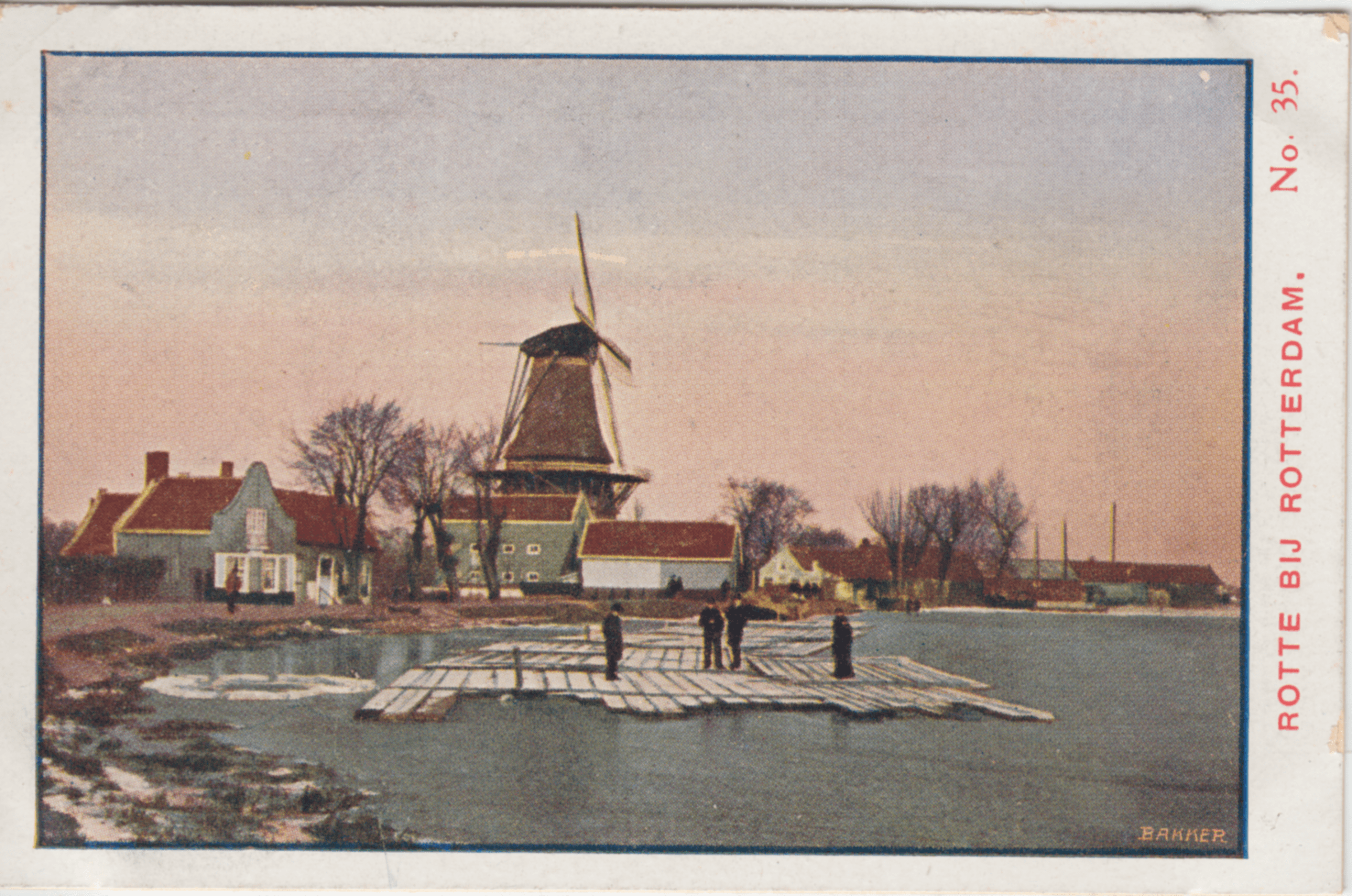 Rotterdam ligt behalve aan de Maas ook aan de rivier de Rotte. 't Aardige landschap op dit plaatje, 'n schilderachtig plekje, wel waard in ons album te worden vastgehouden.