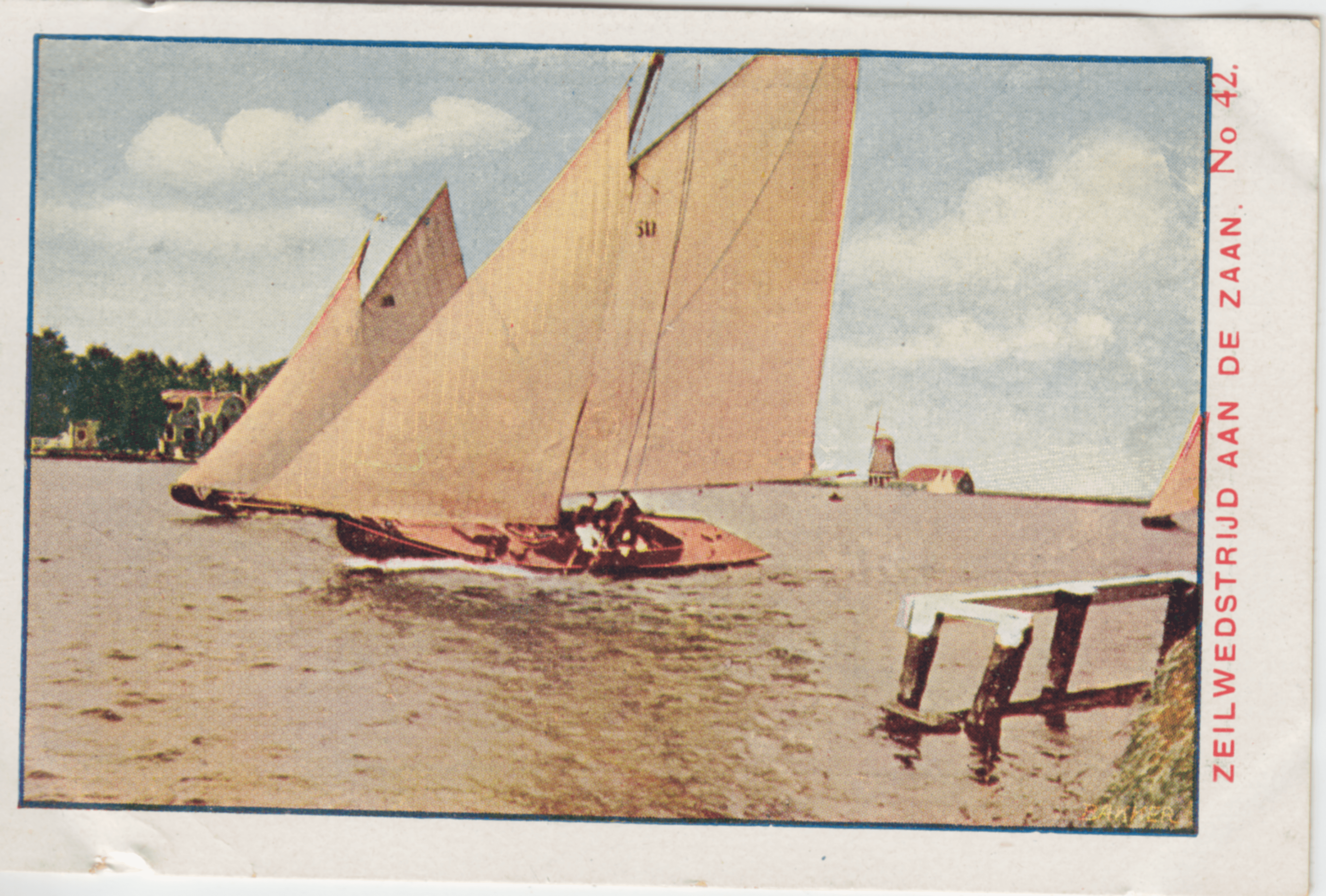De Zaan biedt een prachtige gelegenheid voor zeilsport. Het kiekje geeft ons een zeilwedstrijd te zien, zooals er vele aldaar gehouden worden.