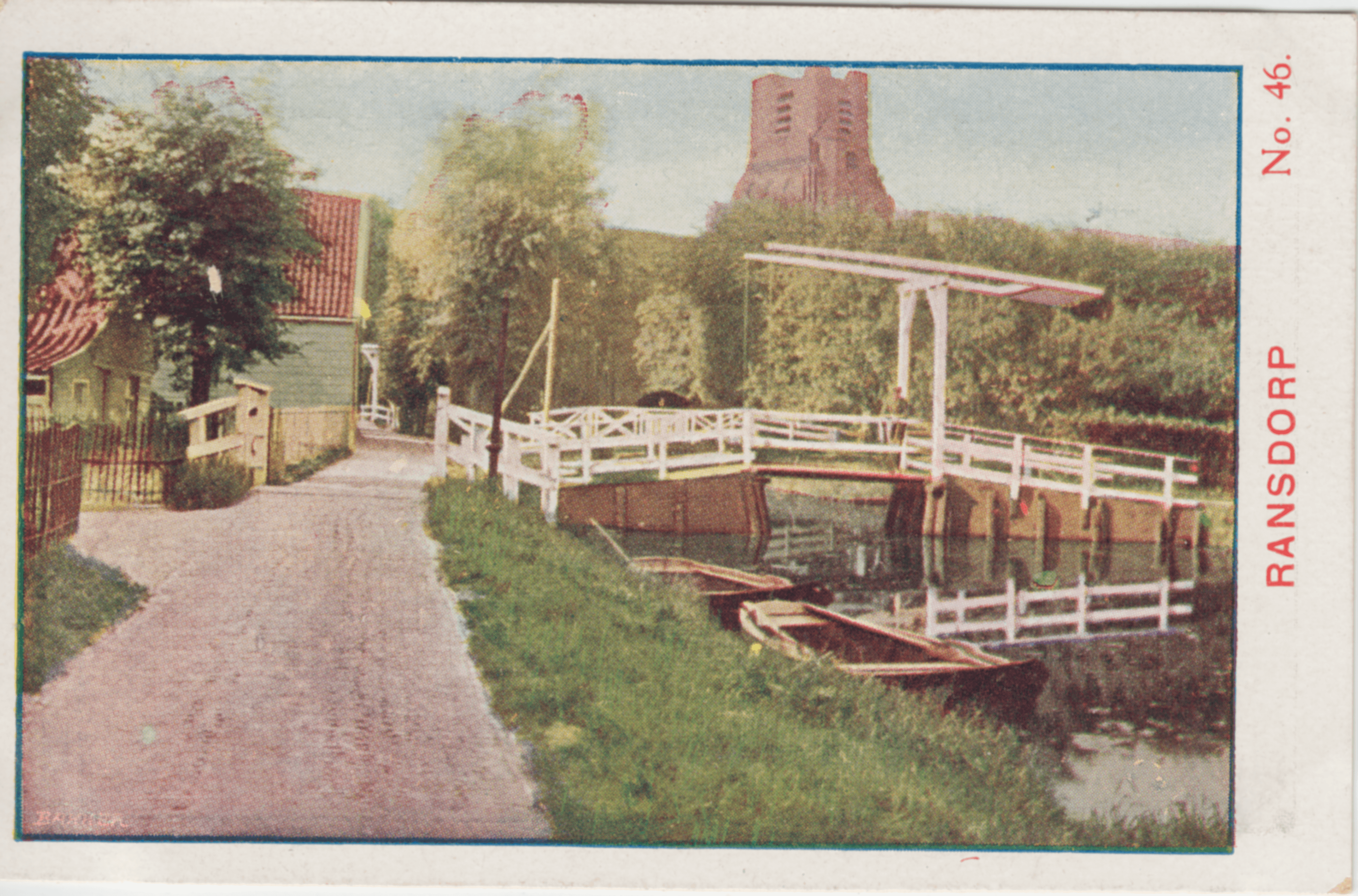 Het dorp Ransdorp in N.-H., door de landlieden Rarop genoemd, ligt te midden van boomlooze weide. Toch is 't geen onbevallig plaatsje. In vorig eeuwen was het grooter, want toen bloeide het door zeevaart. Ons kiekje geeft ons een beeld van 't aanzien van het plaatsje. Let slechts op den breeden, zwaren, onvoltooiden toren der herv. kerk, die ge op den achtergrond ziet. In 1422 werd die kerk door brand verwoest, in 1573 legden de benden van den Graaf van Bossu 't dorp in den asch, in 1825 werd het door overstrooming geteisterd.