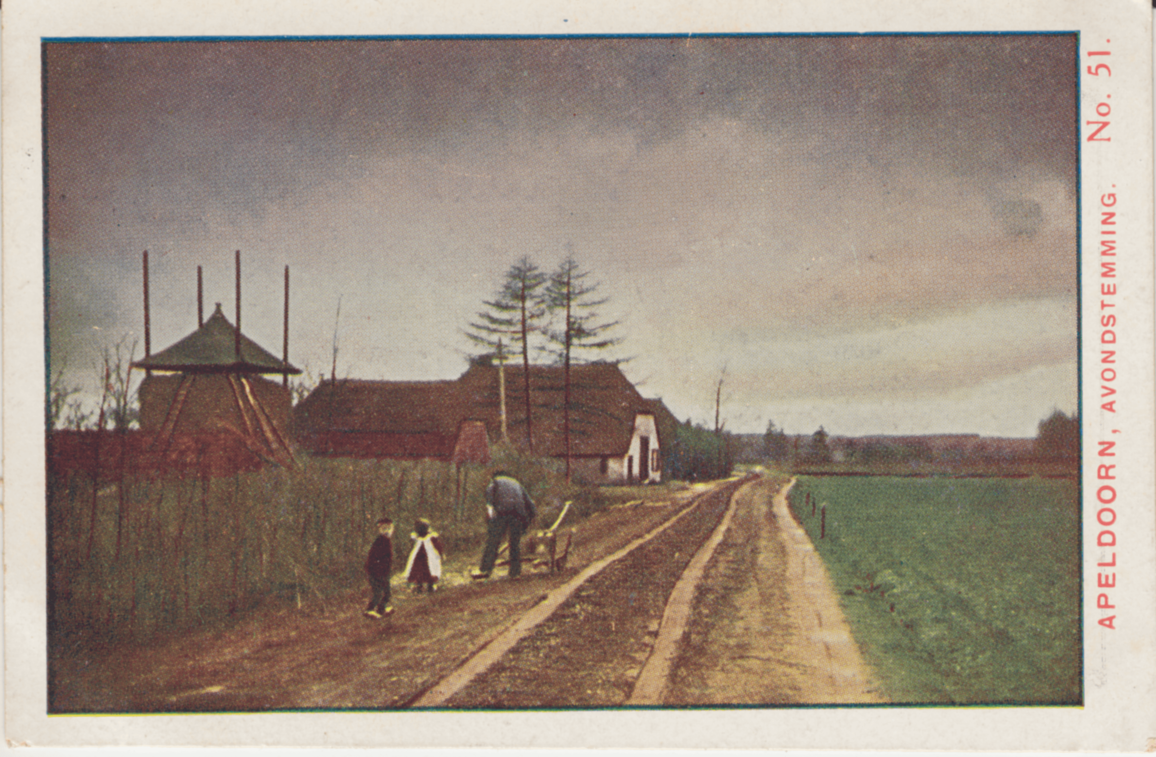 Onwillekeurig komt ons bij het aanschouwen van dit stille landschap, dit ons allen bekende schoolliedje in de gedachten. De dag spoedt ten einde, de landbouwer keert naar huis, vergezeld van zijn kroost, dat vader van 't veldt heeft afgehaald. Van rust en vrede spreekt ons 't gansche tooneeltje.