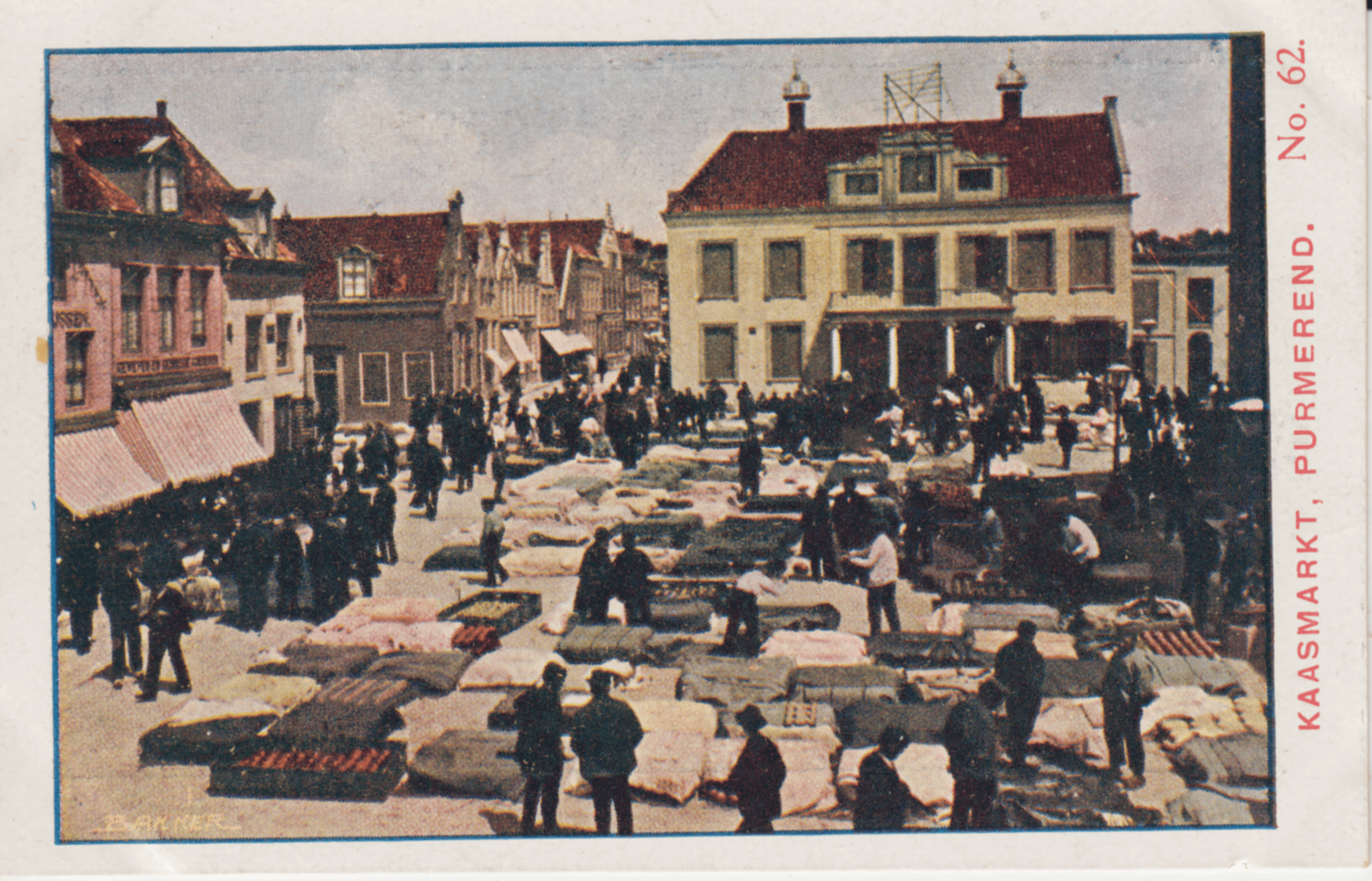 Welk een bedrijvigheid, welk een drukte op de markt te Purmerend! De stad bloeit door een belangrijken binnen- en buitenlandschen handel in hout, en vooral vee en kaas. Geen wonder dus dat het er op de kaasmarkt levendig toegaat.