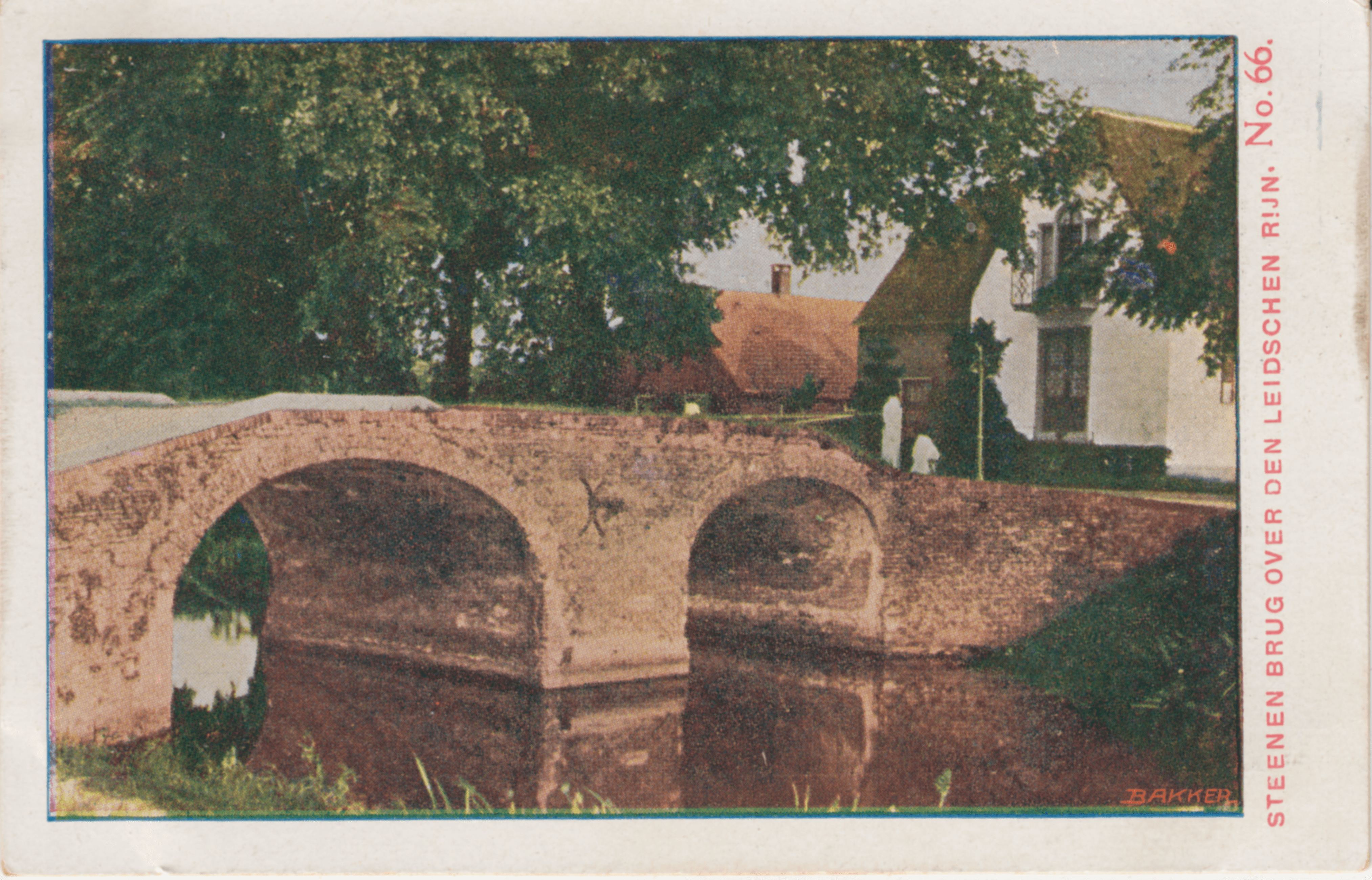 Zeker een eigenaardige brug, die ons dit plaatje te zien geeft. Ze is gebouwd over den Leidschen Rijn, in de buurt van Stadsdam.
